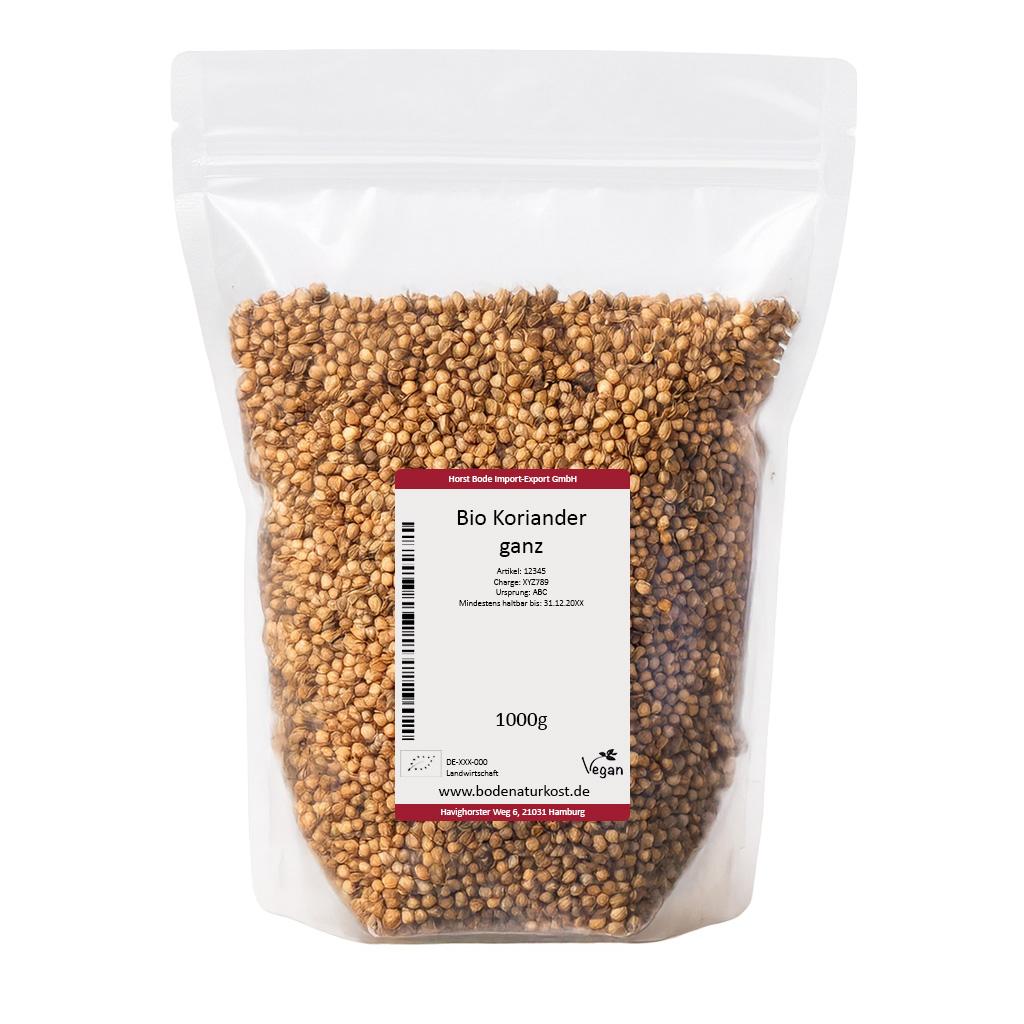 Os grãos de coentro inteiros secos têm uma cor amarelo-acastanhada, são esféricos e têm um sabor que lembra muito o mostarda. O coentro é encontrado em pratos da culinária indiana, árabe e asiática e é frequentemente combinado com noz-moscada, funcho, pimenta, pimenta malagueta, cravinho, gengibre e cominho. Também é usado em produtos de padaria, por exemplo, em misturas de especiarias para pães azédos e bolos de Natal.