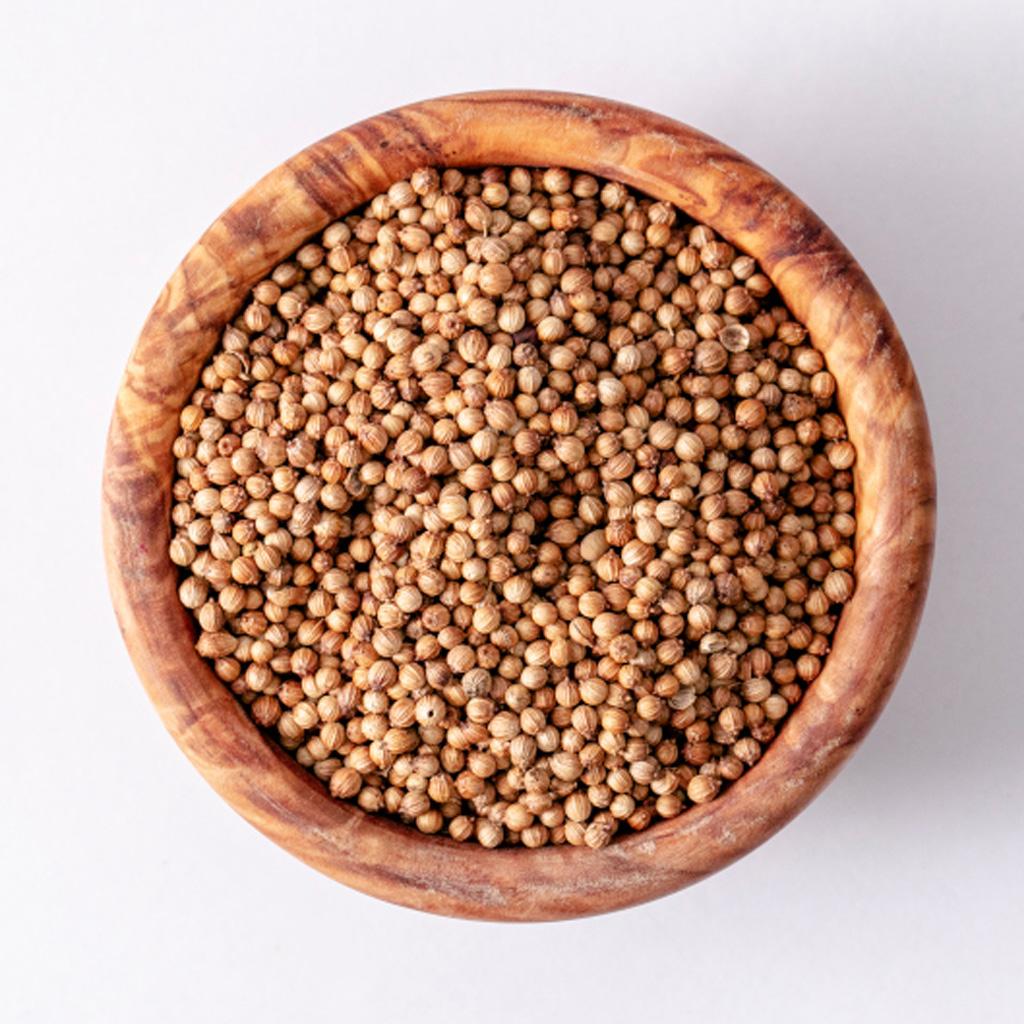 As sementes de coentro inteiras secas têm uma cor amarelo-acastanhada, são esféricas e têm um sabor muito semelhante à mostarda. O coentro é encontrado em pratos da cozinha indiana, árabe e asiática e é frequentemente combinado com noz-moscada, funcho, pimenta, pimenta malagueta, cravinho, gengibre e cominho. Também é usado em produtos de padaria, por exemplo, em misturas de especiarias para pães de massa fermentada e doces de natal.