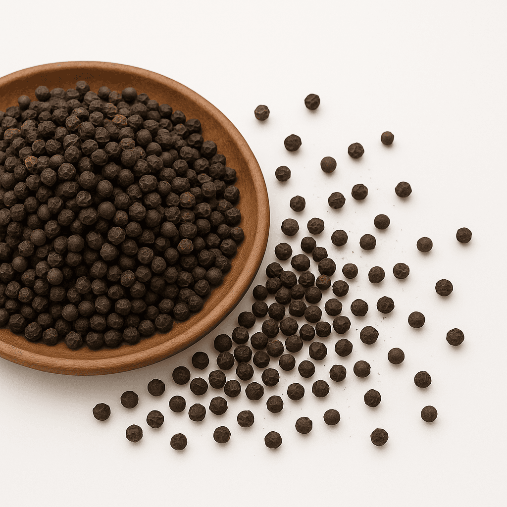 O pimento preto é provavelmente o mais conhecido das muitas variedades de pimenta. Os bagas verdes e imaturas são colhidas e fermentadas ao sol até ficarem pretas. Desta forma, desenvolvem-se o sabor e o picante típicos. É impensável na nossa cozinha diária e é excelente para refinar legumes, sopas, molhos, marinadas, saladas, carnes mal passadas e grelhadas, guisados e massas.